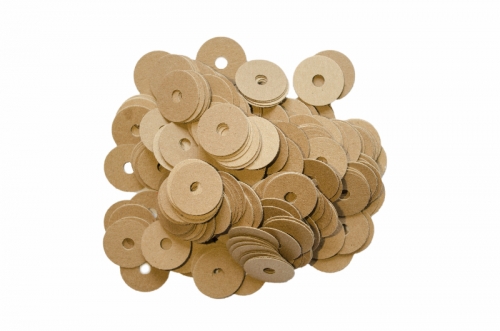 Front Rail Washers made of card for raising the hight of piano keys. The punchings are placed under the felt washer