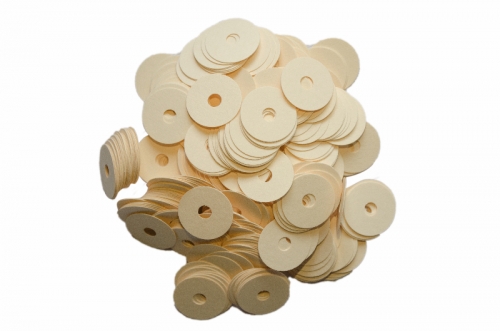 Front Rail Washers made of card for raising the hight of piano keys. The punchings are placed under the felt washer
