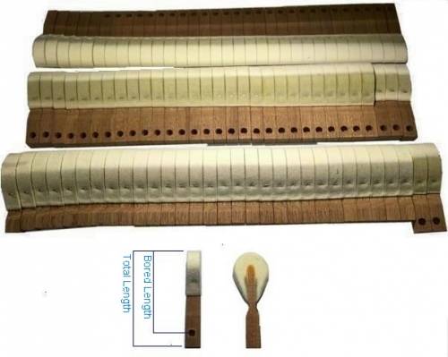State whether required bored or unbored. Hammers can be bored to patterns at extra cost. Vertical Sets: Send pattern of extreme bass and treble hammers and state number in set. Overstrung and Grand Sets: Send first and last hammers in each section, stating number of hammers in each. If it is inconvenient to send patterns, send rubbings of pattern hammers and the measurements from centre of shank to nose.